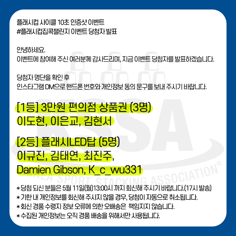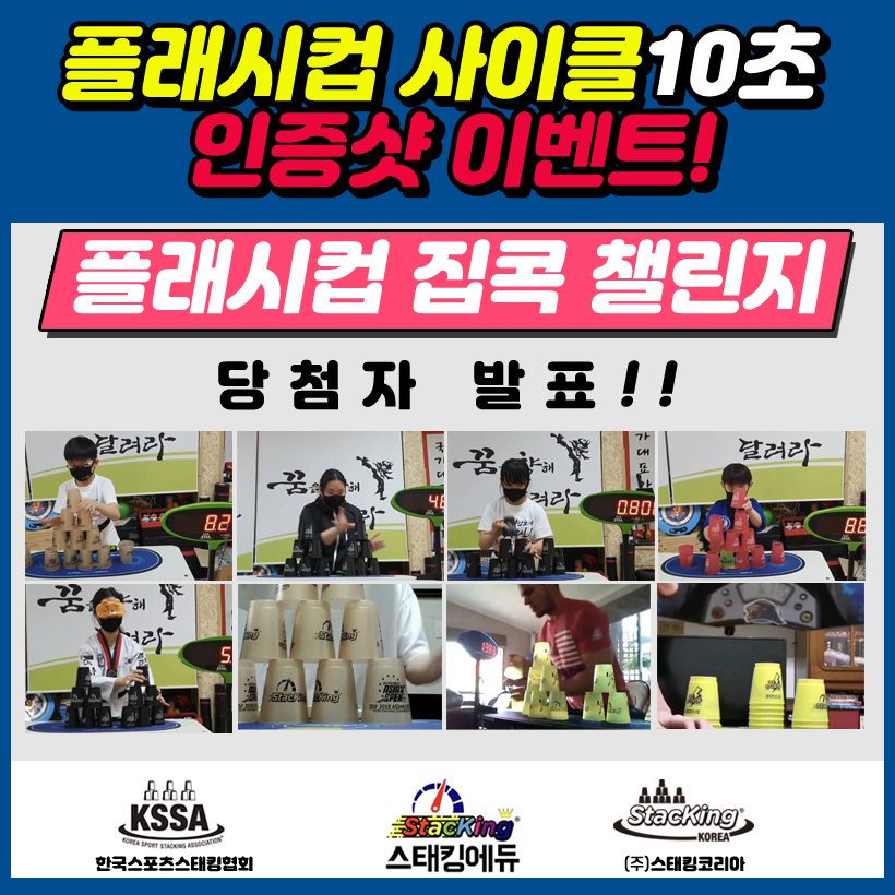 종료 플래시컵 집콕 챌린지 당첨자 발표 페이지 정보 작성자한국스포츠스태킹협회 댓글 0건 조회 1,428회 작성일 20-05-08 15:26 첨부 이미지 참조 목록 댓글목록 댓글목록 등록된 댓글이 없습니다.