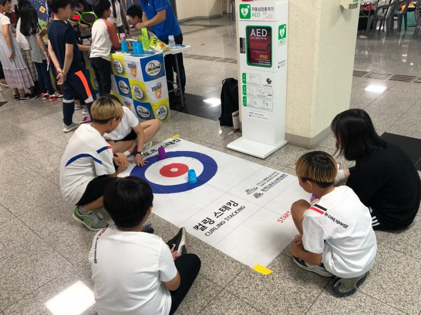 온 가족이 즐기는 스포츠스태킹을 배워보고, 액티비티 컬링 스태킹을 즐겨보았습니다.